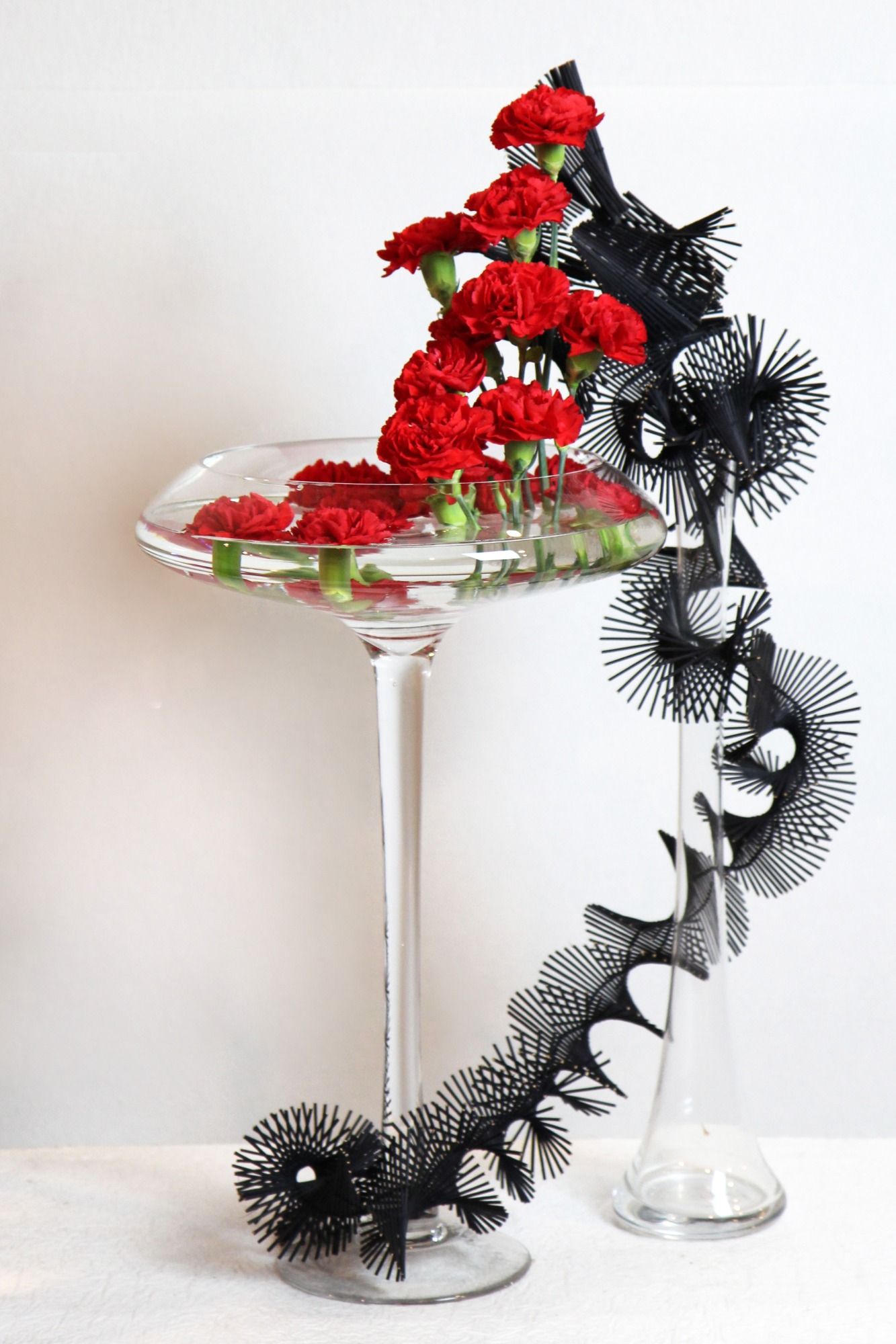 Je trouve aussi que le verre, en tant qu’objet transparent, porte un autre sens dans l’ikebana : l'idée d'une "pureté" dans l’arrangement, où chaque mouvement et chaque détail comptent.